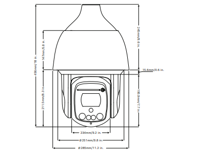 La carcasa colgante está certificada para proporcionar un grado de protección IP66 y ofrece un rango de temperatura de funcionamiento inferior a -40 °C (-40 °F). La cámara suspendida se entrega totalmente ensamblada con un parasol y preparada para su montaje en brazo de pared o empotrada en el techo con el hardware de montaje adecuado (se vende por separado).