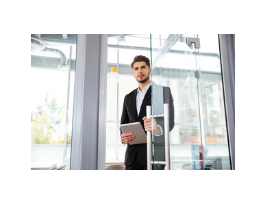 Vista del visitante: interfaz de usuario basada en navegador en modo quiosco donde los visitantes pueden mantener sus propios perfiles almacenados, escanear sus documentos de identidad y firmar digitalmente los documentos necesarios, lo que reduce sustancialmente los tiempos de espera y la acumulación de gente en la recepción.