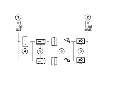 Access Management System (AMS) es un sistema de control de accesos que se puede utilizar como aplicación independiente o integrado con otros sistemas, como Bosch Video Management System (BVMS) o los paneles de intrusión B Series y G Series de Bosch.