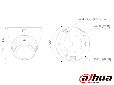 - Diseño domo tipo globo ocular con pedestal de instalación rápida.